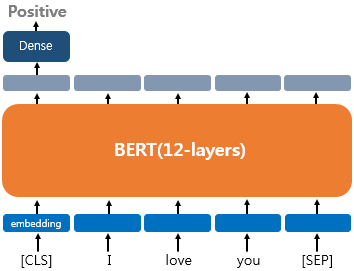 TASK == 스팸메일분류 라고하면, 이미 위키피디아 등으로 사전학습된 BERT위에 분류를 위한 신경망을 한 층 추가함.